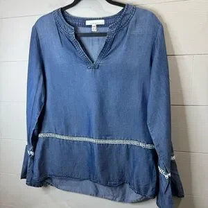 Fourteenth Place Women's Chambray Blue Long Sleeve Top Size Medium