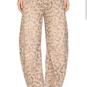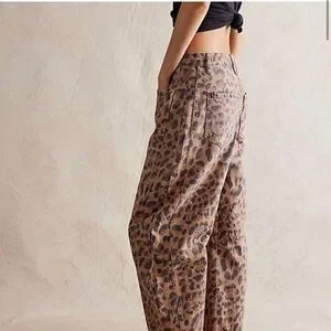 We The Free Good Luck Leopard Barrel Leg Jeans in Brown Sugar