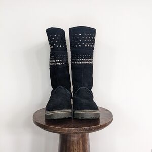 BearPaw Studded Black Suede Winter Boots (Wool & Sheepskin Lining)