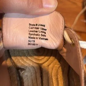 Calf hair upper, leather lining, synthetic sole.