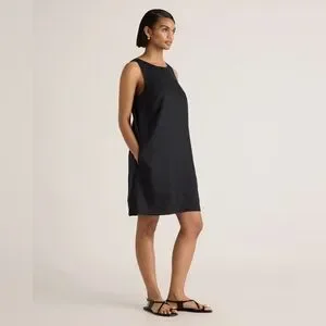 NWT Quince Black Sleeveless Swing Mini Dress, 100% Linen, Size Medium
