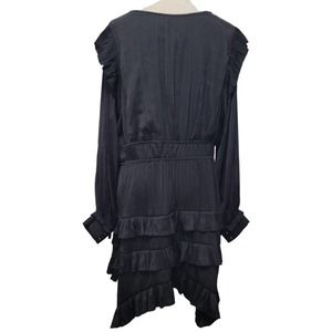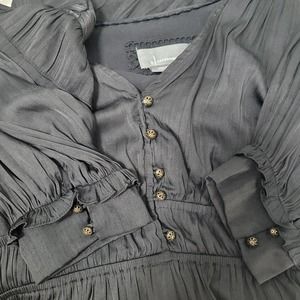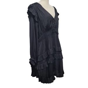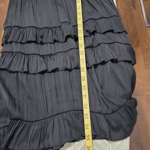 This chic black sundress from Anthropologie features a sleeveless design with a flattering V-neckline and a playful tiered skirt. Perfect for a casual day out or a night on the town, its ruffled layers add a touch of elegance to its relaxed silhouette.