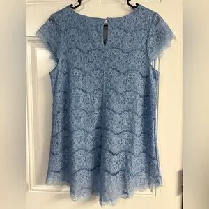 Elegant blue lace top perfect for any occasion. Features delicate lace detailing for a sophisticated look.