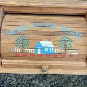 Vintage Rolltop Wooden Breadbox With Home Sweet Home