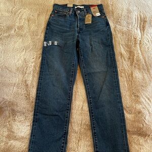 Levi's Blue Wedgie Straight Leg Jeans with Modern Distressed Style