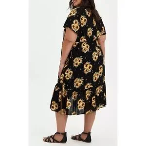 Torrid 5 crepe front tie kimono sunflower pattern