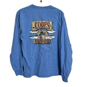 Martha's Vineyard Crew Neck Long Sleeve Bait & Tackle Coops Graphic Tee Blue Large