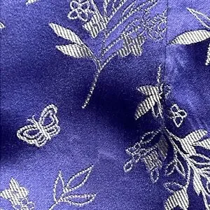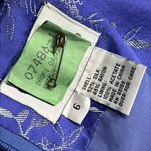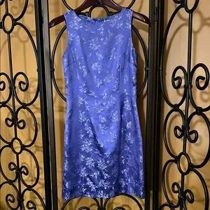 Beautiful lavender blue sleeveless dress with silk and rayon blends. Gorgeous fit, this dress is the type that definitely looks better on than on the hanger! IYKYK Silver floral and butterfly outlines. Back zipper (zipper works perfectly). Back vent/slit. Fully lined. Professionally dry cleaned. *Subtle small bubble like blemish on fabric by bottom of right front seam (see last picture)-nothing that takes away from this vintage gem but I must disclose. Color: Delft Blue. Should you have any questions, please do not hesitate to ask. Thank you for visiting my closet. π