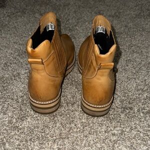 These Roolee ankle boots in a warm tan color feature classic elastic side panels and a sleek silhouette. Crafted with a smooth leather finish and a sturdy sole, they offer both style and durability for any occasion.