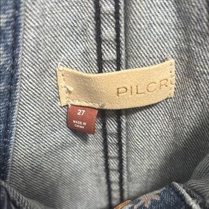Pilcro Floral Blue Denim Overalls with Button Accents lots of pockets