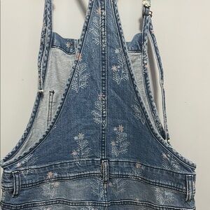 Charming blue denim overalls featuring floral patterns and button accents. Ideal for casual outings. Super cute just a little too tight for what I wanted. Worn only twice