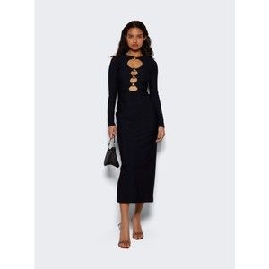 Mugler introduces the Small Crystal Hot Fix Spiral Curve 01 Bag, a striking accessory that blends contemporary design with eco-friendly elements. The bag showcases a distinctive spiral curve embellished with sparkling small crystals, producing an enchanting shimmer that draws attention. Made from high-quality black leather, it includes a stylish handle crafted from partially recycled aluminum, highlighting a commitment to sustainability.