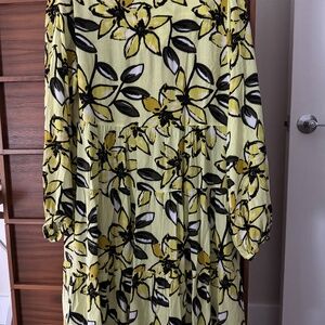 🌼 Maeve by Anthropologie Yellow Floral Tiered Midi Dress – Medium