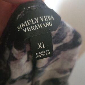 This Simply Vera Vera Wang blouse showcases a sophisticated abstract floral print in gray and black hues. The short sleeves and relaxed fit provide a comfortable yet chic style, perfect for everyday wear. Crafted from lightweight fabric, it offers a graceful drape and effortless elegance.