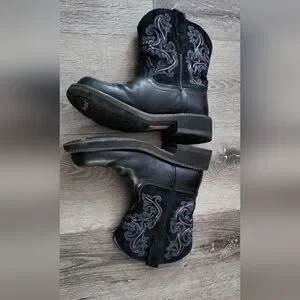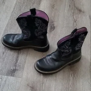 Black and Purple Ariat Leather Embroidered Women's Boots