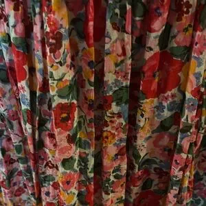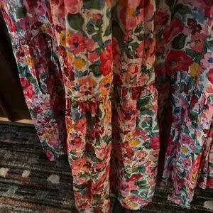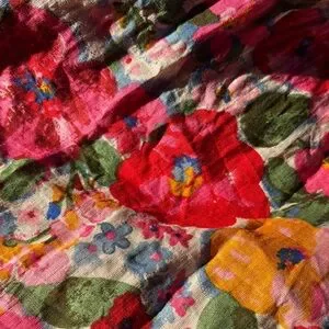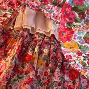 This stunning maxi skirt from NATURAL LIFE features a tiered design in bold red and pink cotton floral with a smocked elasticized waist. The flowing silhouette adds elegance and movement, making it a standout piece for any special occasion.