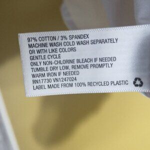 Cotton and spandex, measurements are 21" pit to pit and 26-27" length, slim fit, nice shirt, good condition and quality