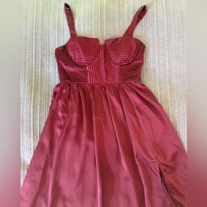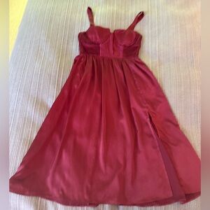 Stunning burgundy maxi dress with a stylish slit. Perfect for formal occasions!