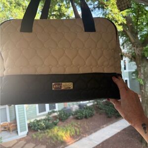 Betsy Johnson Beige and Black Heart Quilted Women's Travel Bag