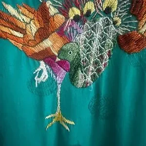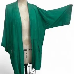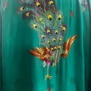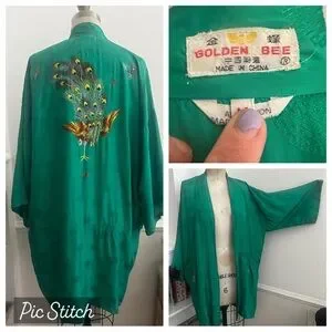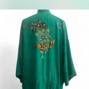 Golden Bee Green traditional vintage Chinese Kimono with Peacock Embroidery sz M