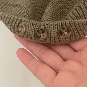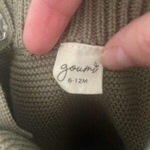 New Without Tags - this romper from Goumi in color Pine features a charming knit design with adjustable suspender straps. Tortoiseshell button closures at the bottom for easy diaper changes. Size 6-12 months. Smoke free home.