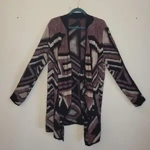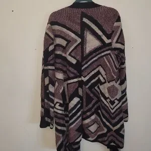 Stylish geometric patterned sweater. Open front design. Perfect for layering. longest length 40 inches