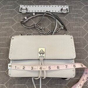 Rebecca Minkoff - light Grey Leather Fold Over Convertible Crossbody w/ silver -Toned Studs detachable handle detachable adjustable shoulder strap no Rips or tears smoke-free home