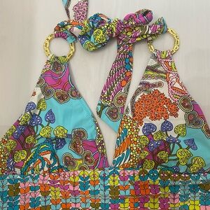Like new Trina Turk two-piece coral reef tanky set with ring top and bottom absolutely adorable. The top is size 12. The bottom is size 10.