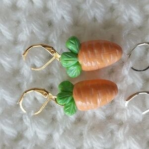 Handmade Crochet Knitting Stitch Markers Progress Keepers Strawberry and Carrot Set of 4 Silver Tone Leverback Hook