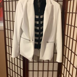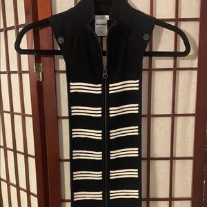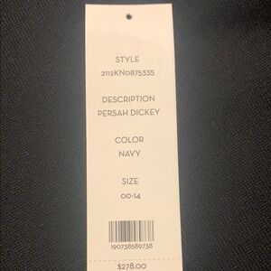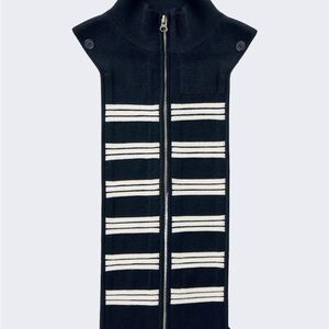 The “Persah Dickey" is a striped dickey jacket insert. It's a navy and white striped merino wool insert that's designed to be worn with VB dickey jackets, creating a nautical look. The Persah Dickey is designed to fit Veronica Beard jackets in sizes 00-14.