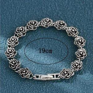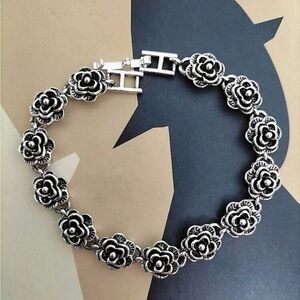 This Vintage Inspired Silver Tone Rose Bracelet features a charming flower-shaped design, perfect for those who appreciate a touch of nostalgia in their jewelry.
