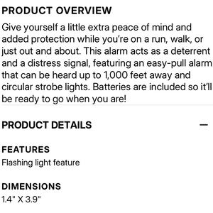 Compact GAIAM safety alarm in metallic pink. Easy pull activation. Portable and efficient.