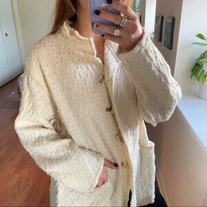tags: off-white, white, soft, jacket, hip length, regular fit, layering, winter, fall, going out, comfort, knit , woven
