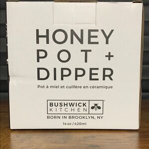 Enhance your kitchen with the Honey Pot and Dipper. This elegant white set is perfect for storing and serving honey with style.