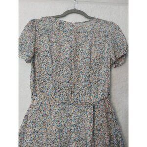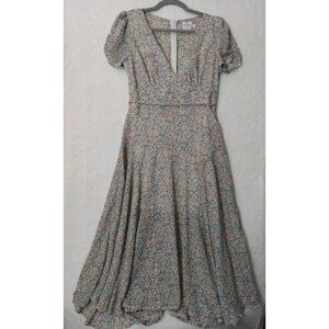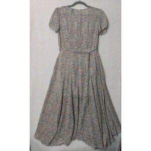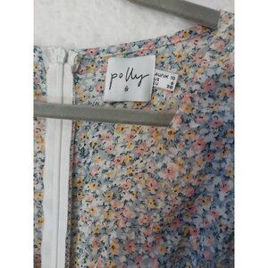 Women's Polly Blue Floral Sheer Midi Dress Short Sleeve Size 6 Summer Casual