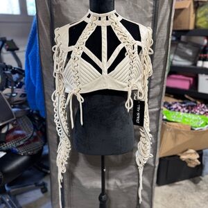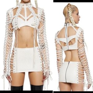 Dolls Kill Rude Awakening Lace Up Top XXL White
