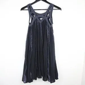 Free People FP One Paisley Vine Lattice Tunic Mini Dress Black