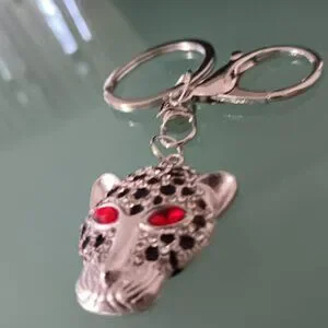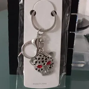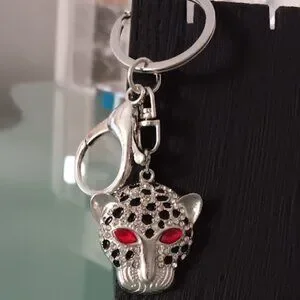ONLY **1** LEFT!!! NEW!!! MINT Cheetah Silver Black Enamel Red & Clear Crystals Purse Charm Key Chain**Silver Cheetah Head is decorated with Black Enamel and Red & Clear Crystals! In addition to using it as a Key Chain since it has a Key Ring you can attach it to your Handbag! Making it a Fabulous Purse Charm/Accessory by using the Purse Clip! Cool Design you'll Love this one!**Total Length is 3.5" Long**NEW ON HANG TAG!