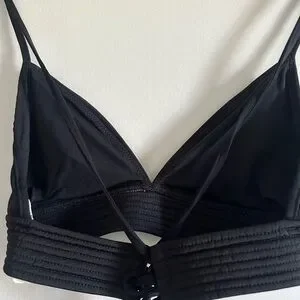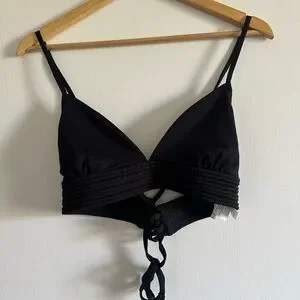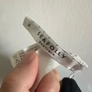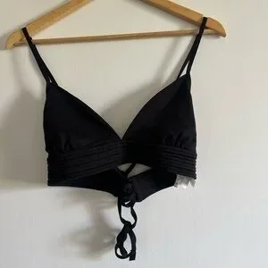 Seafolly Australia Black Quilted Fixed Tri Strappy Bikini Top size 14 EUC