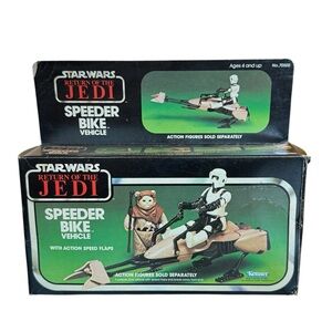 Experience thrilling adventures with the Star Wars Speeder Bike Vehicle. Featuring a sleek black and brown design, this toy is perfect for young Star Wars fans. Let your child's imagination soar as they recreate epic scenes from the galaxy. Kenner 1983. Action Figure sold separately. Excellent condition! Your satisfaction is very important to me, please let me know if you have any questions before purchasing. Thank you for visiting my listing and Happy Shopping!