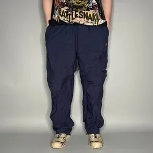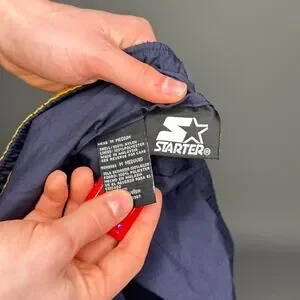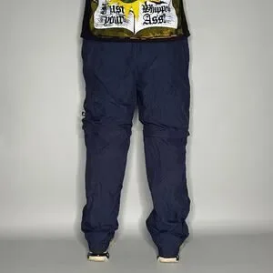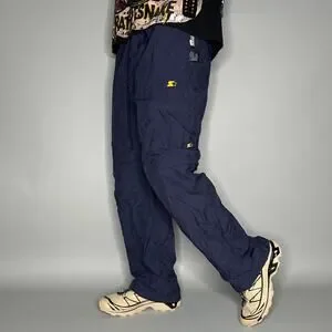 Vintage Starter Track Pants Navy Blue Nylon Sweatpants Yellow Baggy Wide Leg Y2K