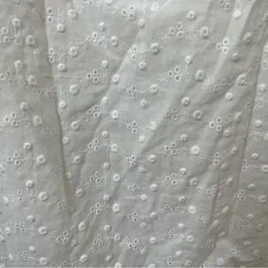 Chic mini dress with lace-up front. Delicate eyelet details. Short puff sleeves. Perfect for summer outings.