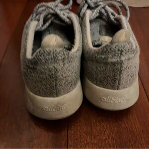 Comfortable Atlas color Allbirds sneakers with lace-up design. Perfect for everyday wear. SUPER comfortable. Well loved, could use a wash to get off the discoloration on the sole- they are washer friendly. Some wear on the heel.