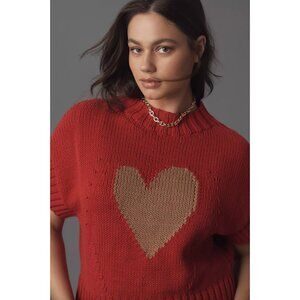 Anthropologie Maeve Pippa Mock-Neck Sweater Tee Sweet Heart Sz Small