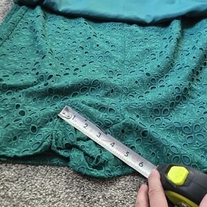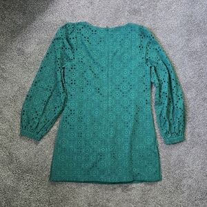This stunning green romper by Lilly Pulitzer features a square neckline and elegant balloon sleeves, perfect for a wedding guest or cocktail event. The rich jewel-tone color and intricate lace detailing create a sophisticated and timeless look. Look classy on every step by wearing Lilly Pulitzer Sarina Square Neck Romper. The romper has an embroidered eyelet design allover for a chic look. A square neck, full-length balloon sleeves, and elastic cuffs give it more convenience. 100% polyester.