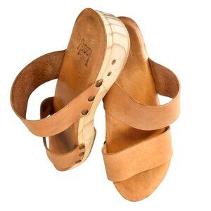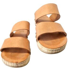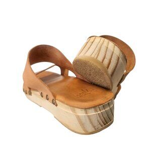 Beek Wood Clog Leather Sandals Womens Size 7 Natural Tan Double Strap Slip On