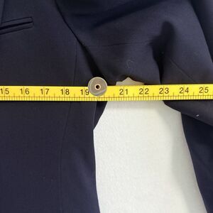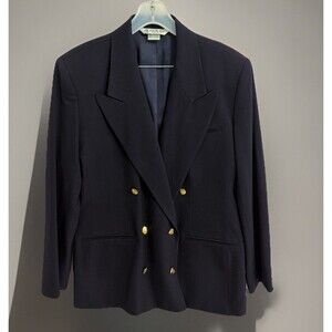 This Vintage Austin Reed blazer is a classic choice for women looking for a sophisticated workwear or business outfit. With its sleek black color and gold buttons, this blazer exudes elegance and style. Made from high-quality wool, it offers both warmth and durability. The double-breasted design adds a touch of refinement, making it a versatile option for a variety of occasions. The long sleeves and tailored fit give it a polished and professional look, perfect for making a statement in the office or at a formal event.