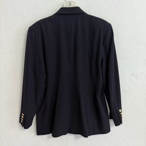 Vintage Austin Reed Blazer Women 14 Black Gold Buttons Wool Double Breast Work