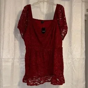 Brand new with tags! Torrid Women’s plus size red lace baby doll tank top with a sweetheart neckline. This top is SEXY and accentuates all the right curves! The lace sleeves and the flowy lace bottom of the shirt a sheer, though the stomach area does have a thin lining. Perfect for Valentine’s Day, date Night, girl’s night, etc.