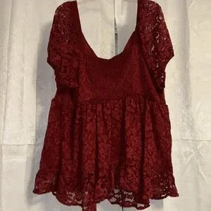 Torrid Plus Size Women’s Dark Red Lace Sweetheart Babydoll Top Size 3X 22/24